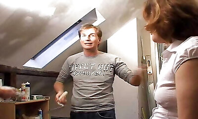 Chubby fellow tries to be a hunky and fucks his milf housewife